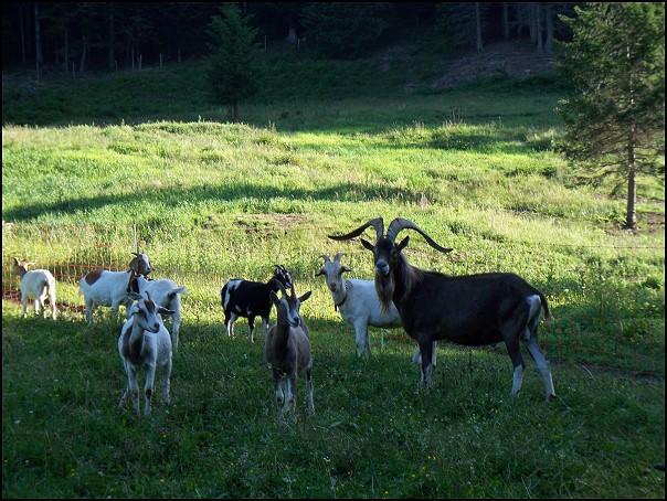 An der Alm angekommen, fühlten wir uns an die alten Heimatfilme erinnert: Hier stand ganz gemütlich eine Herde Kühe, daneben räumte eine Sennerin die Almterrasse auf; dahinter ein wunderschöner Blick auf die umliegenden Berge ... wahrlich wie im Film! Und weit und breit keine weiteren Menschen zu sehen! :-)