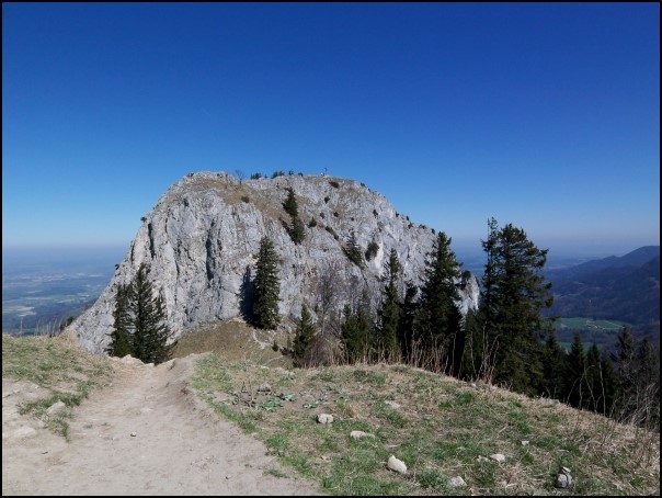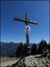 Etwas unerhalb des Gipfelkreuzes angekommen, konnten wir zwischen zwei Wegen wählen ... das Gipfelkreuz des Heubergs oder der Aufstieg auf die Wasserwand. Doch das war ein Klettersteig und momentan herrschte hier eine regelrechte Völkerwanderung hierauf. Ja – wir waren leider nicht die einzigen heute auf dem Berg. Also ging's erst mal zum Gipfelkreuz, wo wir einige Zeit Pause machten, die herrliche Aussicht auf den Inn und die darum liegenden Städte genossen sowie ein kleines Picknick machten. Nach einiger Zeit ging's zur Wasserwand. Gereizt hätte mich der Aufstieg hier schon. Aber mit meiner Hand ließ ich es dann doch (wenn auch widerwillig) sein. Das wäre zu gefährlich gewesen. Doch aufgeschoben ist nicht aufgehoben. Der Berg steht ja noch länger da ... :-)