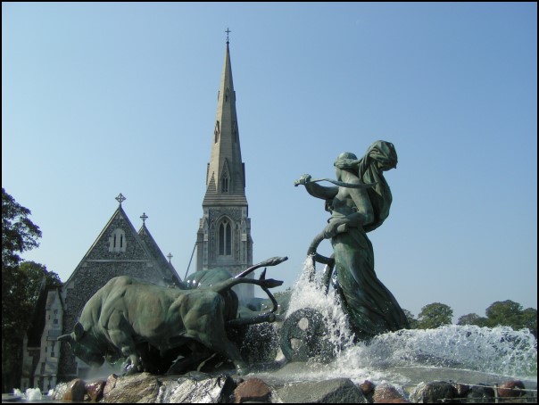 Nachdem ich es endlich abgewartet hatte, die kleine Meerjungfrau auch mal ohne Japaner zu fotografieren, spazierten wir über den Churchill-Park in Richtung Zentrum und kamen dabei am Gefion Springbrunnen an. Was für ein Brunnen und was für ein Motiv. Der Brunnen wurde von Anders Bundgaard errichtet und soll eine Sage darstellen, nach der die Götter Gefion mit Hilfe von Stieren die Insel Seeland aus schwedischer Erde herauspflügten.