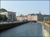 Über die Brücke Holmenbro liegt die alte Börse. Der schlanke Turm zieht viele Blicke auf sich, da sein spitz zulaufendes Dach aus vier kupfernen sich umeinander drehende Drachenschwänze besteht.