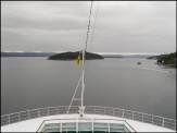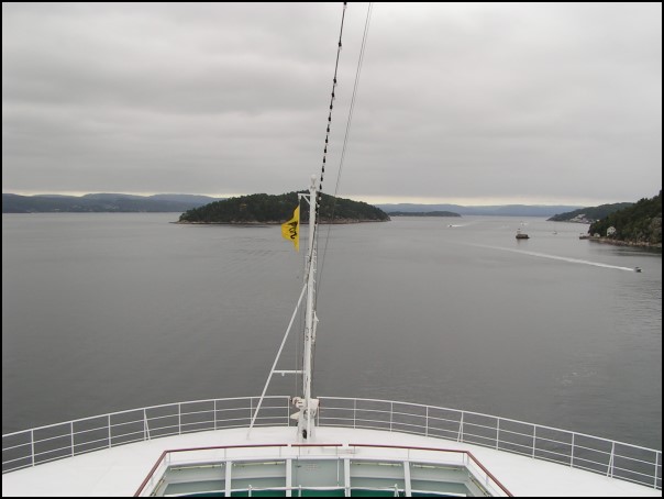 Wir begaben uns auf Deck 10 direkt zum Bug und obwohl uns der Wind nur so um die Ohren pfiff, blieben wir hier lange stehen und betrachteten den herrlichen Oslofjord. Immer wieder sahen wir verlassene Hütten, ein paar Inselchen mussten umfahren werden und kurze Zeit später konnte ich bereits das Rathaus von Oslo erkennen.