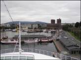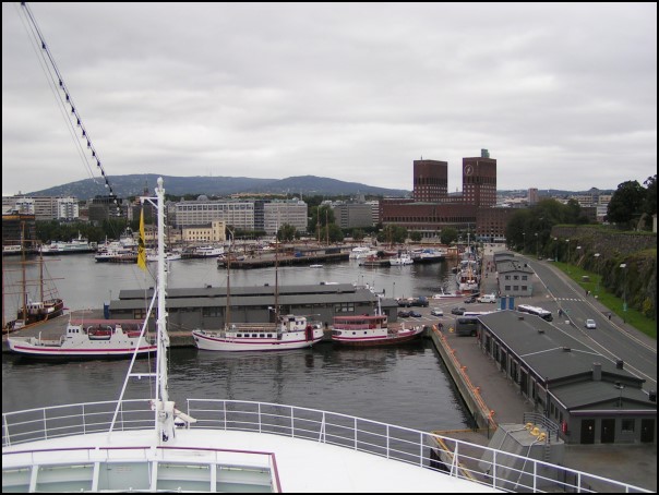 Wir fuhren geradewegs auf die Stadt zu und konnten nach und nach immer mehr markante Punkte der Stadt erkennen, wie auch den berühmten Holmenkollen, dem Wahrzeichen der Stadt. Olympische Spiele, Weltmeisterschaften sowie das alljährliche Skispringen haben die 1892 errichte Sprungschanze berühmt gemacht. Im Sommer finden hier Konzerte und andere Veranstaltungen statt. Der 62 m hohe Turm ermöglicht bei guter Sicht ein herrliches Panorama über Oslo. Daneben befindet sich noch das Skimuseet, welches die Entwicklung der Skigeschichte darstellt.