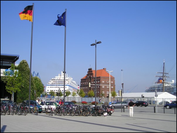 Als hätte ich es gewusst, zog es Toni natürlich gleich einmal zum Hafengelände und zu den Schiffen und wir sahen uns die Hapag Lloyd Europa etwas genauer an. Heute wurden sogar Führungen durch das Schiff angeboten, aber leider musste man schon auf ein Jahr vorreserviert haben. Hätten wir das gewusst, hätten wir sicher reserviert, aber so konnten wir leider nichts machen.