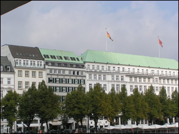 Ausnahmsweise etwas länger geschlafen, machten wir uns heute erst gegen 11 Uhr auf den Weg in Richtung der Binnenalster. Im ALEX wollten wir zum Frühstücken gehen, denn das Lokal war uns noch von unserem letzten Besuch in Hamburg bekannt. Da das Wetter heute um einiges besser war und die Sonne zum Vorschein kam, ergatterten wir einen Platzim Freien mit direktem Blick auf die Alster. Bei Croissants, Marmelade und Cappuccino unterhielten wir uns über Gott und die Welt und unsere nächsten Reisen – unser absolutes Lieblingsthema. ;-)