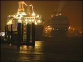 So wärmten wir uns in der Bar Pupasch auf und gegen 21.30 Uhr hörten wir schließlich die Hupe der Blu. Nun würde es nicht mehr lange dauern. Wenige Minuten später fuhr sie auch schon an uns vorbei. Es war ein toller Anblick, dieses hellbeleuchtete Schiff im Hafen von Hamburg. Traumhaft.