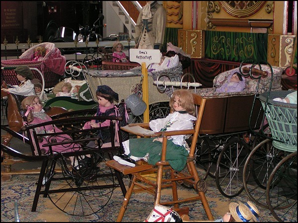 Im ersten Teil der Halle stießen wir auf die American Dream Cars, die herrlich im Scheinwerferlicht glänzten. Dazu spielte entsprechende Musik und Puppen fanden ihren Platz zwischen den einzelnen Wägen. Diese Puppenarrangements fand ich während der gesamten Ausstellung sehr reizvoll, denn damit wirkt das ganze gleich viel lebhafter.