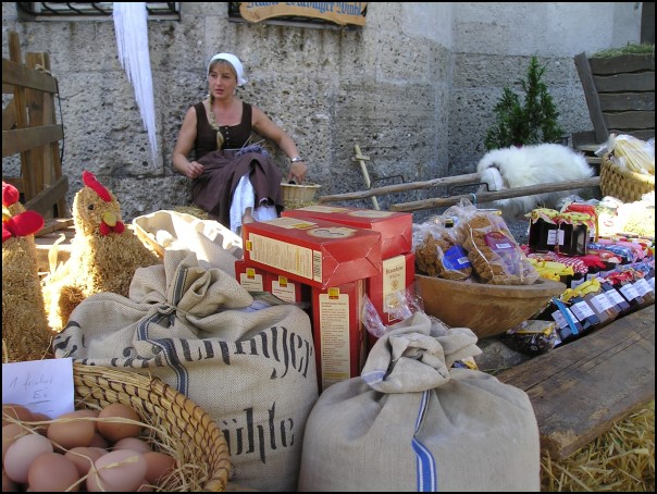 In allen Ecken dieses Schlossgeländes waren Marktstände aufgebaut, Musikkapellen mit mittelalterlichen Liedern pilgerten durch die Parkanlage, Magier und Wahrsagerinnen nutzten die Gunst der Stunde, um ihre Kunst anzubieten, Handwerker zeigten mit alten Arbeitsgeräten ihr Können, Bettler hängten sich an die Gäste dran und der Bader lud zur Erfrischung in seinen Badetrog ein. Es herrschte reges Treiben auf dem Parkgelände – ohne Terminpflicht, ohne Zwang ... jeder tat das, wonach ihm gerade war. Eine schöne Atmosphäre, die wir lange Zeit genossen, zwischendurch Selbstgebackenes und Gegrilltest verspeisten, um schließlich wieder den Rückweg anzutreten.